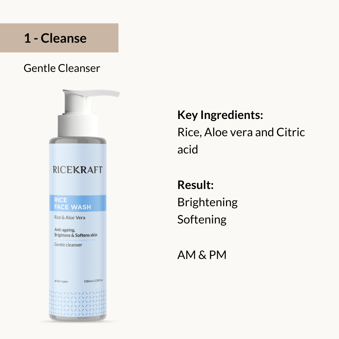 Aqua, Sodium Lauroyl Sarcosinate, Lauryl Glucoside, Aloe vera Extract, Cocamidopropyl Betaine, Citric Acid, Oryza Sativa (Rice) Extract, Glycerin, PEG-150 Distearate, Decyl Glucoside, Parfum, Geogard ECT, EDTA.
