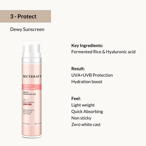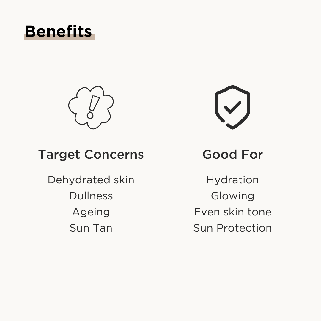 Purified Water, Butylene Glycol, C12-15 Alkyl Benzoate, Propanediol, Propylene Glycol, Ethylhexyl Methoxycinnamate, Butyl Methoxydibenzoylmethane, 1,3, Butylene Glycol, Rice Ferment Filtrate, Sodium Acrylates Copolymer, Benzophenone-3, Phospholipids, Phenoxyethanol, Ethylhexylglycerin, Sodium Stearoyl Glutamate, Vitamin E, Disodium EDTA, Sodium Hyaluronate, Aloe Vera Extract, Geranium Oil.